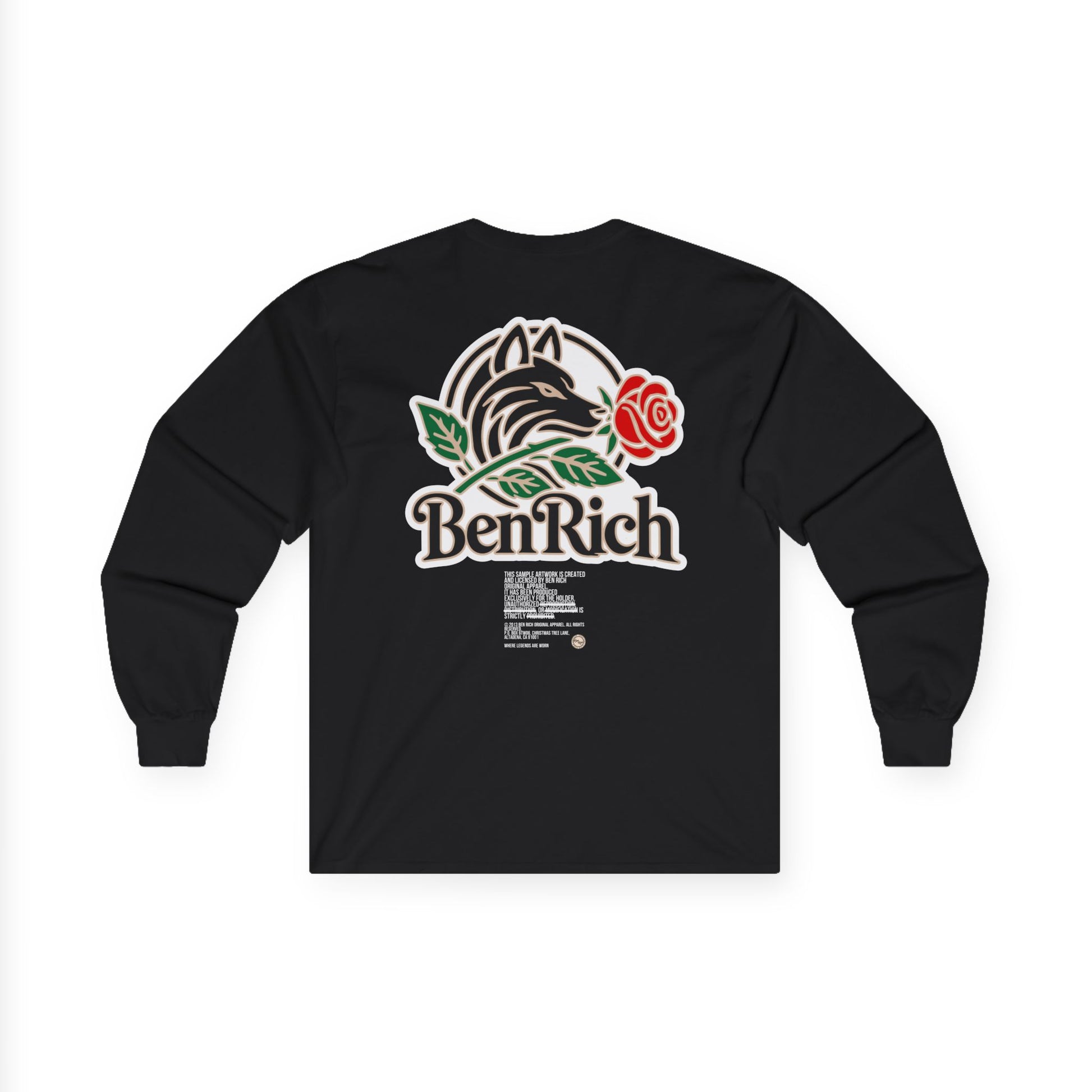 Celebrate timeless style and fierce loyalty with the Scarlet Wolf Long Sleeve. Featuring the iconic Ben Rich wolf and rose emblem, this tee symbolizes strength, beauty, and authenticity. Designed on a bold red canvas, it’s perfect for layering or standing out on its own. With premium fabric and a relaxed fit, this long sleeve brings both comfort and character to any wardrobe. Represent your heritage with pride.